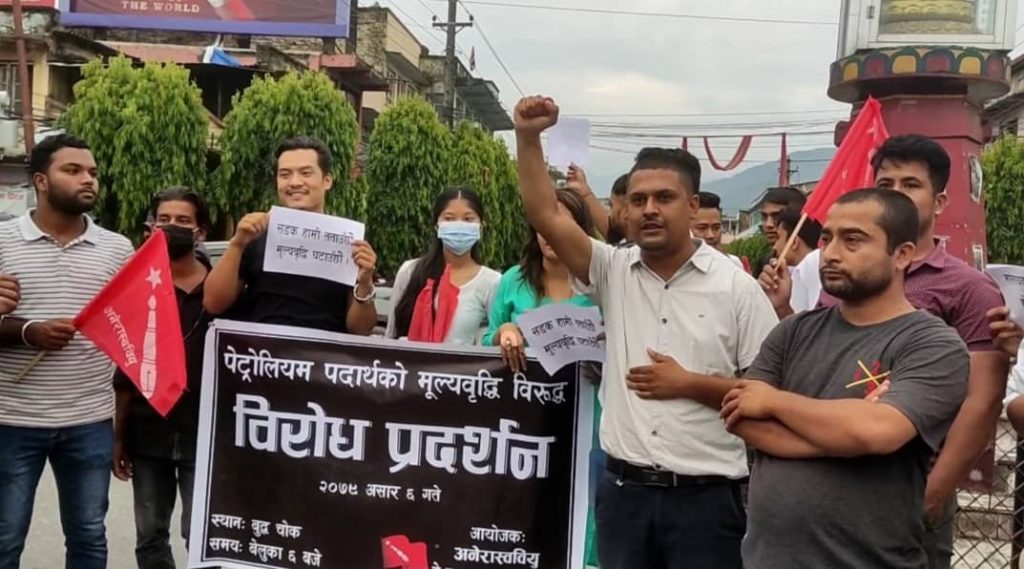 पेट्रोलियम पदार्थमा भएको मूल्य वृद्धिको विरोध गर्दै हेटौंडामा अनेरास्ववियुको प्रदर्शन