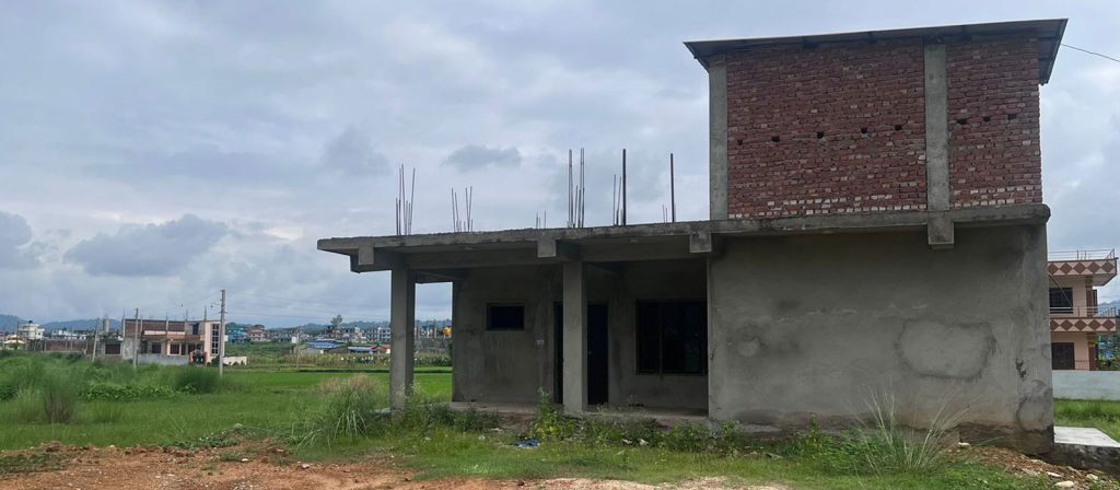 अतिक्रमित क्षेत्रमा हेटौंडा–५ नम्बर वडाको निर्माणधिन हेल्थपोष्ट ।