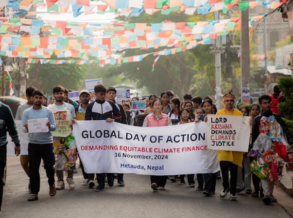 अजरबैजानको बकुमा भइरहेको सिओपी २९ ग्लोबल डे अफ एक्सन २०२४ को अवसरमा शनिबार हेटौंडामा न्यायपूर्ण जलवायु वित्तको ७ बुँदे माग गर्दै जनप्रदर्शन गरिएको हो ।