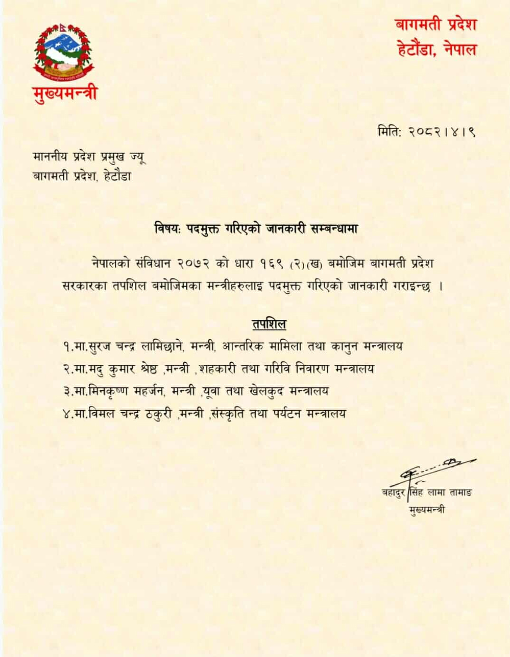 निजी मिडियालाई विज्ञापन दिन बागमतीका मुख्यमन्त्रीको निर्देशन
