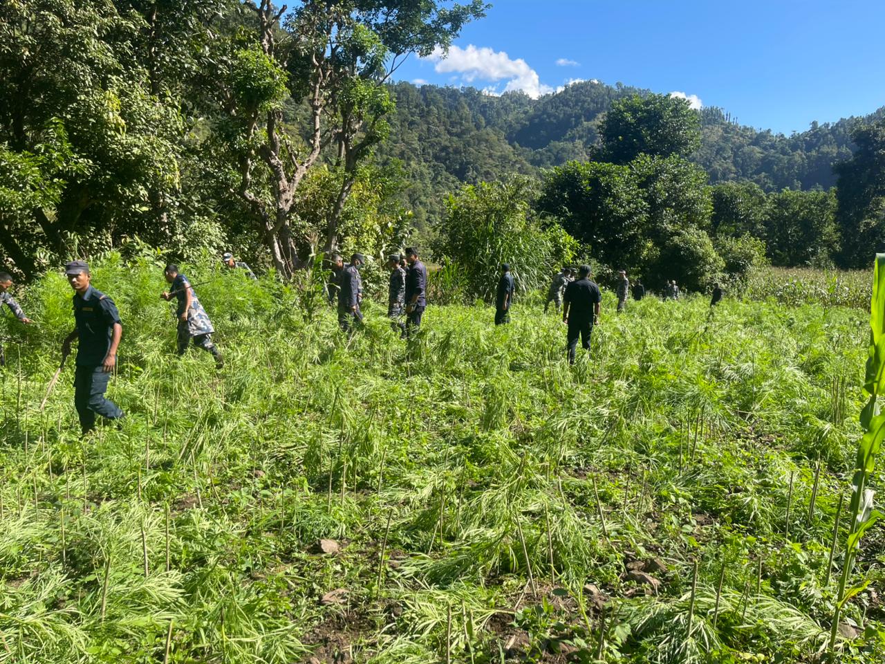 मकवानपुरमा ३० बिघाभन्दा बढी क्षेत्रफलको अवैध गाँजा खेती नष्ट