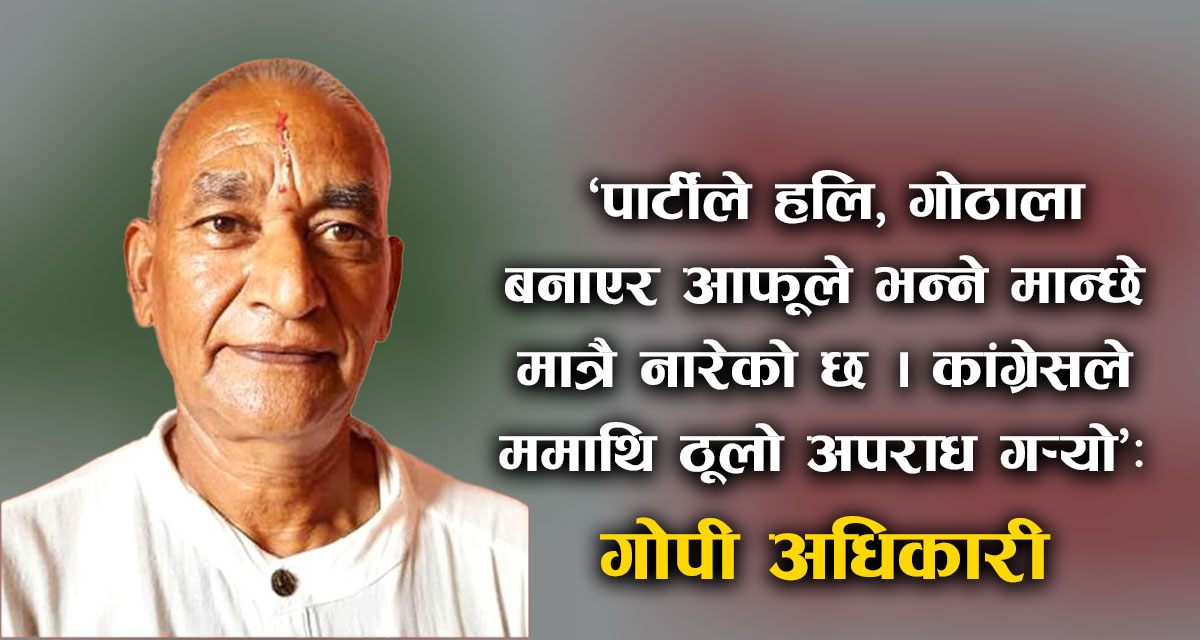 मकवानपुर । मकवानपुरगढीमा गोपी अधिकारी भनेपछि नचिन्ने वृद्धवृद्धादेखि युवा पुस्ता कमै होलान् । फागुन २०१७ मा बुढीचौरमा जन्मिएका अधिकारी मकवानपुरगढीको नेपाली कांग्रेसका संस्थापक नेता हुन् । कुनैबला कमल थापाको रजगज चल्दापनि अधिकारी मकवानपुरगढीमा कांग्रेस पार्टी निर्माणका लागि लागिरहन्थे । माओवादी सशस्त्र द्वन्द्वको अवस्थामा गाउँमा कांग्रेस भन्न डराउने परिस्थिति हुँदा...