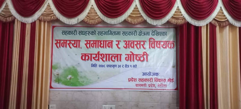 मकवानपुर । सहकारी संस्थामा देखिएका समस्या, समाधान र अवसर बिषयको दुईदिने कार्यशाला गोष्ठी सम्पन्न भएको छ । सात बुँदे प्रतिबद्धता पत्र घोषणा गर्दै सहकारीमा देखिएको समस्या,सामाधान र अवसर विषयको कार्यशाला गोष्ठी सम्पन्न भएको हो । हेटौंडामा सोमबार र मंगलबार सम्पन्न गोष्ठीले वर्तमान अवस्थामा सहकारीमा आएको समस्याहरुको समाधान गर्न र...
