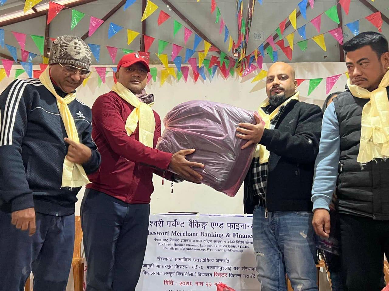 मकवानपुर । गुहेश्वरी मर्चेन्ट बैकीङ्ग एण्ड फाईनान्स लिमिटेड हेटौंडा शाखाले विद्याथीलाई न्यानो कपडा वितरण गरेको छ । फाईनान्सले मकवानपुरगढी गाउँपालिका–८ मा रहेको बाल जागृति आधारभुत विद्यालयमा अध्ययनरत् १२५ जना विद्यार्थीका लागी न्यानो कपडा (स्वेटर) वितरण गरेको हो । संस्थाले आफ्नो सामाजिक उत्तरदायित्व अन्तर्गत विद्यार्थीहरुका लागि न्यानो कपडा वितरण गरिएको...