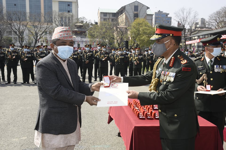 मकवानपुर । सेना दिवसको अवसरमा भीमफेदी गाउँपालिका अध्यक्ष हिदम लामालाई प्रधान सेनापति प्रंससा निशानबाट सम्मान गरिएको छ । नेपाली सेनाको भावनासंग जोडिएको ऐतिहासिक चिसापानी गढी पुर्ननिर्माण र संरक्षण कार्यमा तदारुकता देखाएको भन्दै सेना दिवसको अवसरमा अध्यक्ष लामालाई सम्मान गरिएको हो । प्रधान सेनापति महारथी प्रभुराम शर्माको हातबाट सेना दिवस...