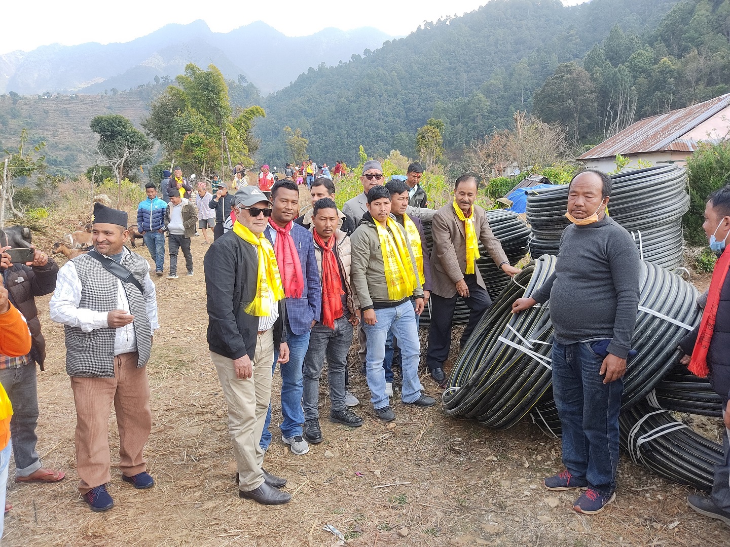 भीमफेदीका बासिन्दालाई जयराम लामिछानेले गरे पानीको पाइप सहयोग