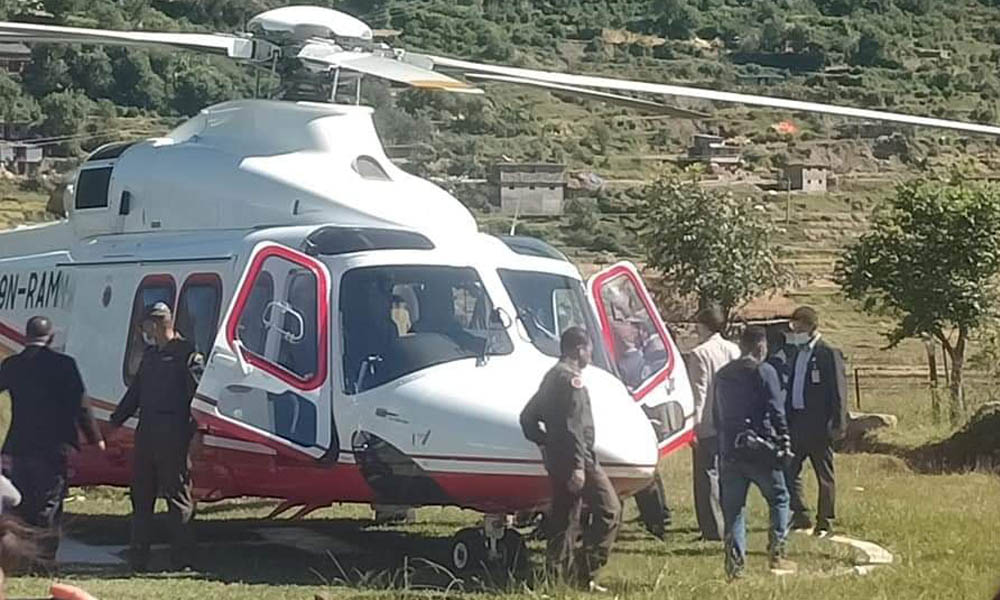 हेलिकप्टरबाटै पहिरोप्रभावित क्षेत्र हेरेर फर्किए प्रधानमन्त्री