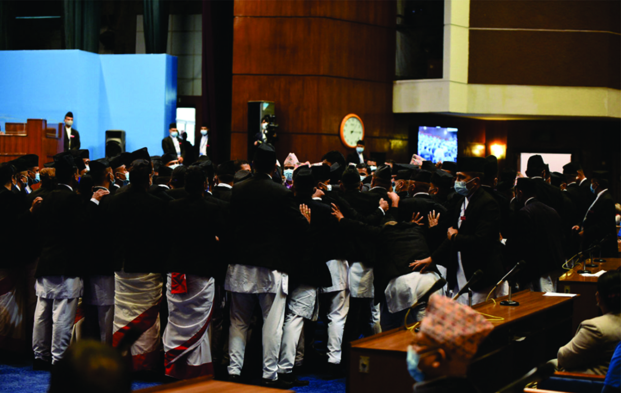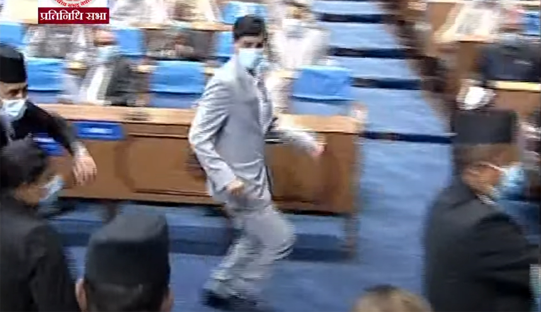 अर्थमन्त्री शर्माको संसदभित्रै ‘गुरिल्ला शैली’, एकातिर घम्साघम्सी, अर्कातिरबाट दौडिँदै गरे ‘मिसन पूरा
