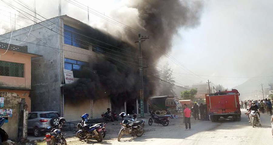 होटलमा आगलागी पाहुनालाई अर्को घरको छतबाट उद्धार