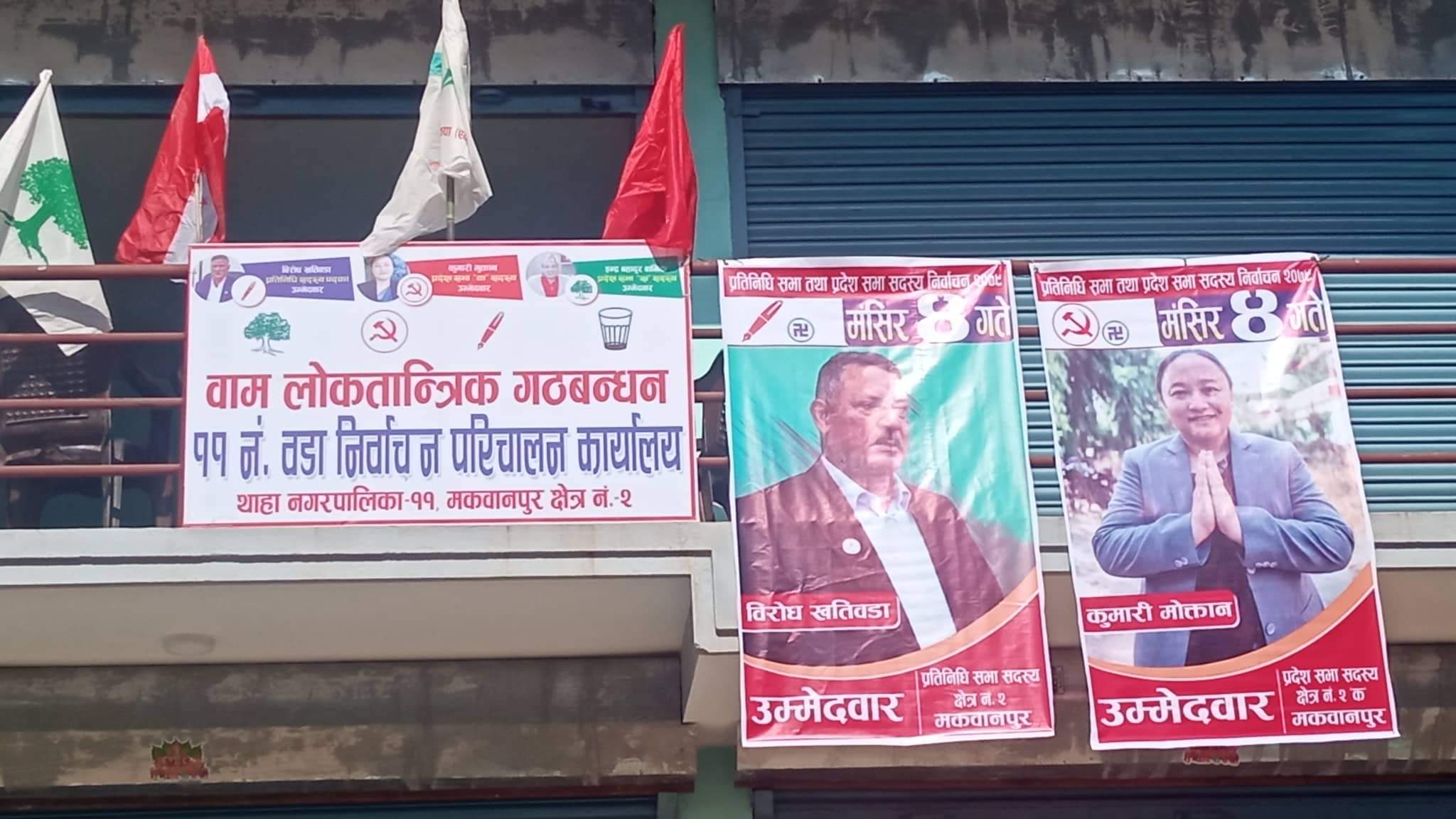 मकवानपुर । मंसिर ४ गते हुने निर्वाचनको प्रचारप्रसारमा ऐले उम्मेद्वारहरु घरदैलो, सभा, भेटघाटमा ब्यस्त रहेका छन् । यसैबिच बाम लोकतान्त्रिक गठबन्धनका मकवानपुर क्षेत्र नं. २ का प्रतिनिधि सभा र प्रदेश सभाका उम्मेद्वारहरु चुनाब प्रचारप्रसारमा ब्यस्त छन् । आइतबार गठबन्धनका उम्मेदवारहरु नेकपा (एकीकृत समाजवादी) का स्थायी समिति सदस्य तथा मकवानपुर...