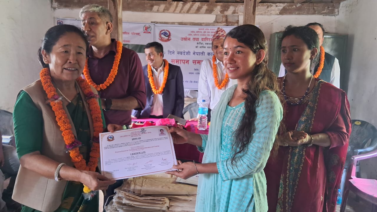 हेटौंडा । मकवानपुरको पश्चिमि भेगका अवस्थित राक्सिराङ गाउँपालिकाका ४० जना युवाहरुलाई सीपमुलक तालिम प्रदान गरिएको छ । राक्सिराङ ३ झिल्किनीमा सञ्चालन भएको ३० दिने केराको सुप्लोबाट स्वदेशी नेपाली कागज उत्पादन गर्न सिकाउने तालिम र वडा नम्बर ५ ठाडेचुरीमा सञ्चालन भएको ३९० घण्टे केयर गिभर तालिमको आज समापन गरिएको हो...