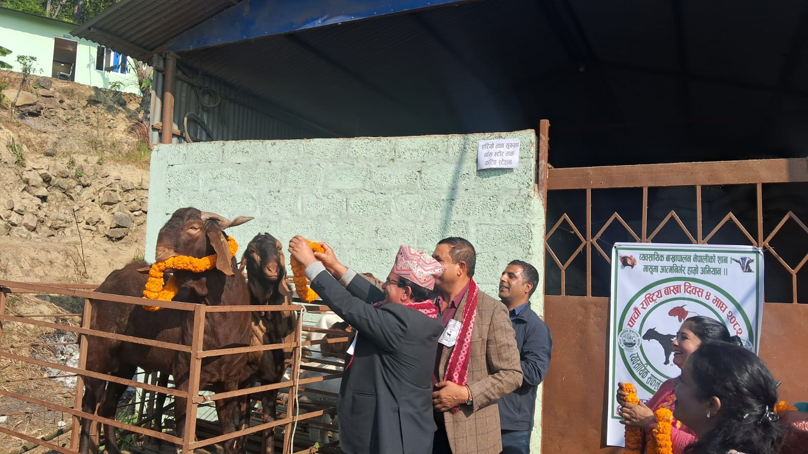 मन्त्री पौडेलले लगाए बाख्रालाई सयपत्री फूलको माला