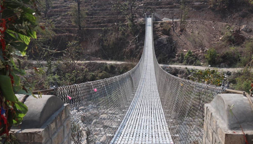 मकवानपुरको धेत्रेदमारमा झोलुङ्गे पुल निर्माणभएपछि विद्यालय आवतजावत सहज