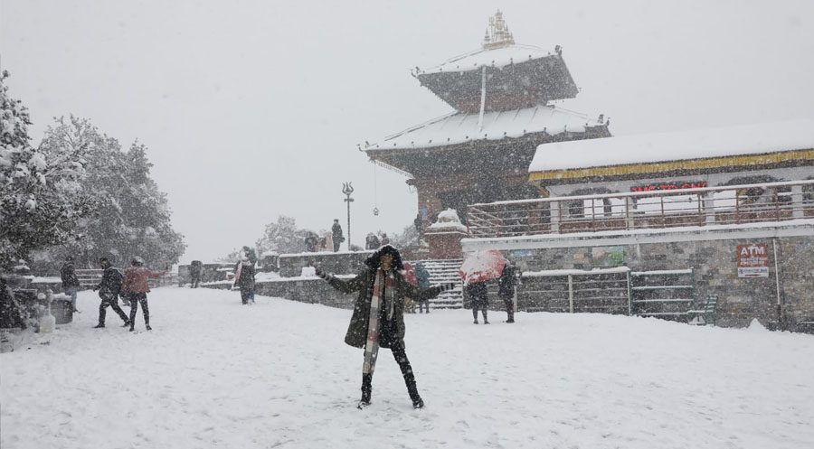 काठमाडौं । काठमाडौंको चन्द्रागिरीमा हिमपात भएको छ । चन्द्रागिरीमा हिउँमा खेलेर रमाइलो गर्नेहरूको भीडभाड छ । हिउँले चन्द्रागिरिको रिसोर्ट, केबलकार, भालेश्वर मन्दिरलगायत क्षेत्र सेताम्य भएका छन् । चन्द्रागिरी डाँडामा हिउँ परेको यो वर्ष दोस्रो पटक हो । यसअघि गत पुस दोस्रो साता हिमपात भएको थियो । त्यतिबेला सयौं युवायुवतीहरू...