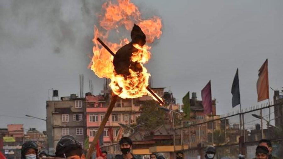 स्थानीय तहको चुनाव गर्न माग गर्दै प्रधानमन्त्रीको पुत्ला दहन