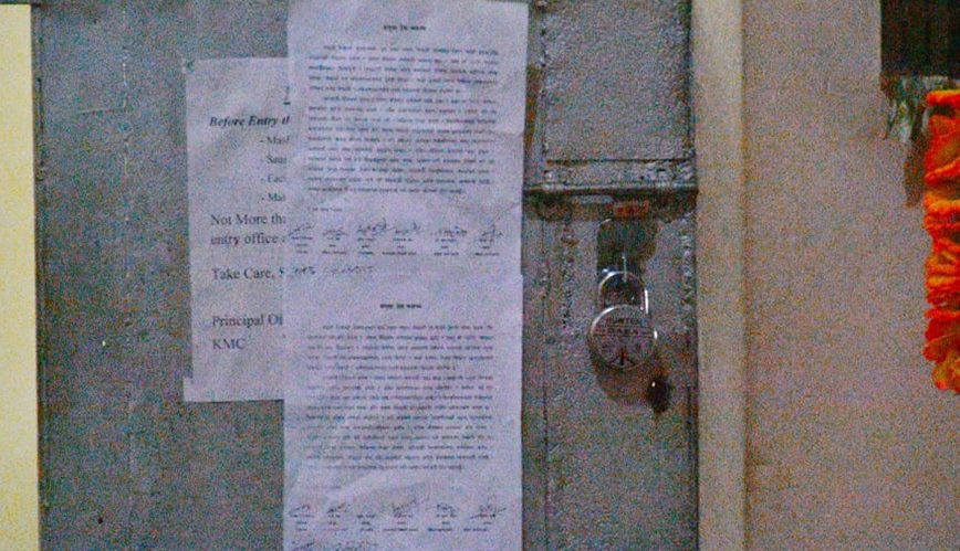 बढी शुल्क लिएको विरोधमा संयुक्त विद्यार्थी संगठनले केएमसी कलेजमा लगाए ताला