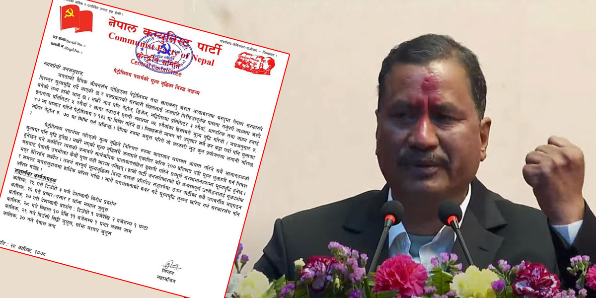 पेट्रोलियम पदार्थको मूल्यवृद्धिको विरोधमा विप्लव नेकपाद्वारा आन्दोलन घोषणा