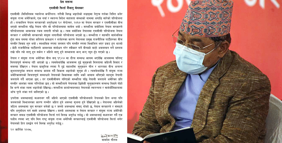 एमसीसी फिर्ता लैजान अमेरिकालाई वामदेव गौतमको आग्रह (विज्ञप्तिसहित)