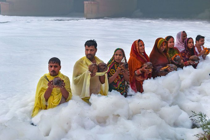 दीपावलीको अर्को दिन तुवाँलोले घेरिएका भारतको राजधानी नयाँदिल्लीका बासिन्दाले अहिले प्रदुषणको फिजैफिजले भरिएको यमुनामा छठका लागि डुबुल्की मारिरहेका छन्। भारतीय सञ्चारमाध्यममा अनुसार पवित्र नदी मानिने यमुनामा केही दिनदेखि छठको स्नान गर्ने श्रद्धालुहरूको भीड छ। उनीहरूले पवित्र मानेको यमुनाको पानी भने प्रदुषणको फिजले ढाकिएको छ। त्यही फिजमा सूर्यलाई अर्घ दिइरहेका...