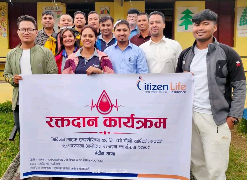 वार्षिकोत्सवको अवसरमा सिटिजन लाईफ हेटौंडाको रक्तदान