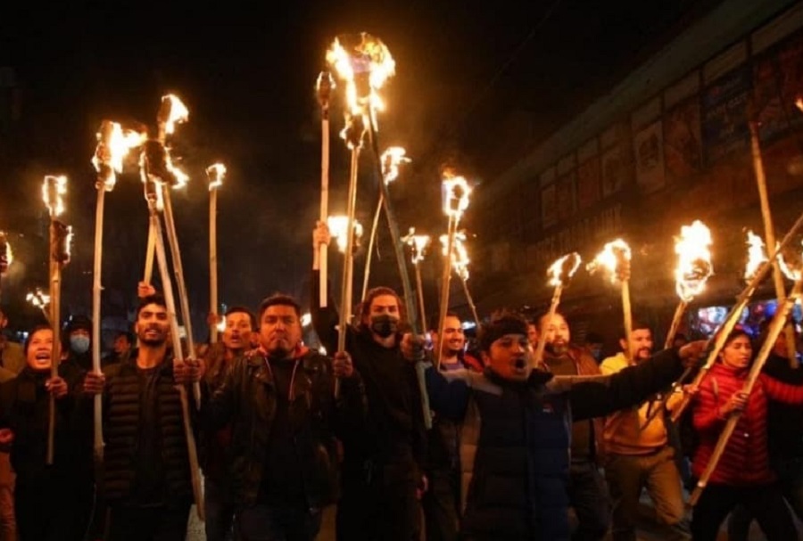 काठमाडौं । माघ २२ गते बिहिबारको राष्ट्रव्यापी आम हड्ताल सफल बनाउन अनेरास्ववियूले राजधानीमा मसाल जुलुस निकालेको छ । कान्तिपुर सिटि कलेज पुतलिसडकबाट निस्केको जुलुस पद्मोदय चोक बाल्मिकी, आरआर क्याम्पस हुँदै भृकुटीमण्डपमा पुगेर सम्पन्न भएको थियो । प्रधानमन्त्री ओलीले प्रतिनिधी सभा विघटन गरेपछि नेकपा माधव प्रचण्ड समुहले आन्दोलन गर्दै आएको...