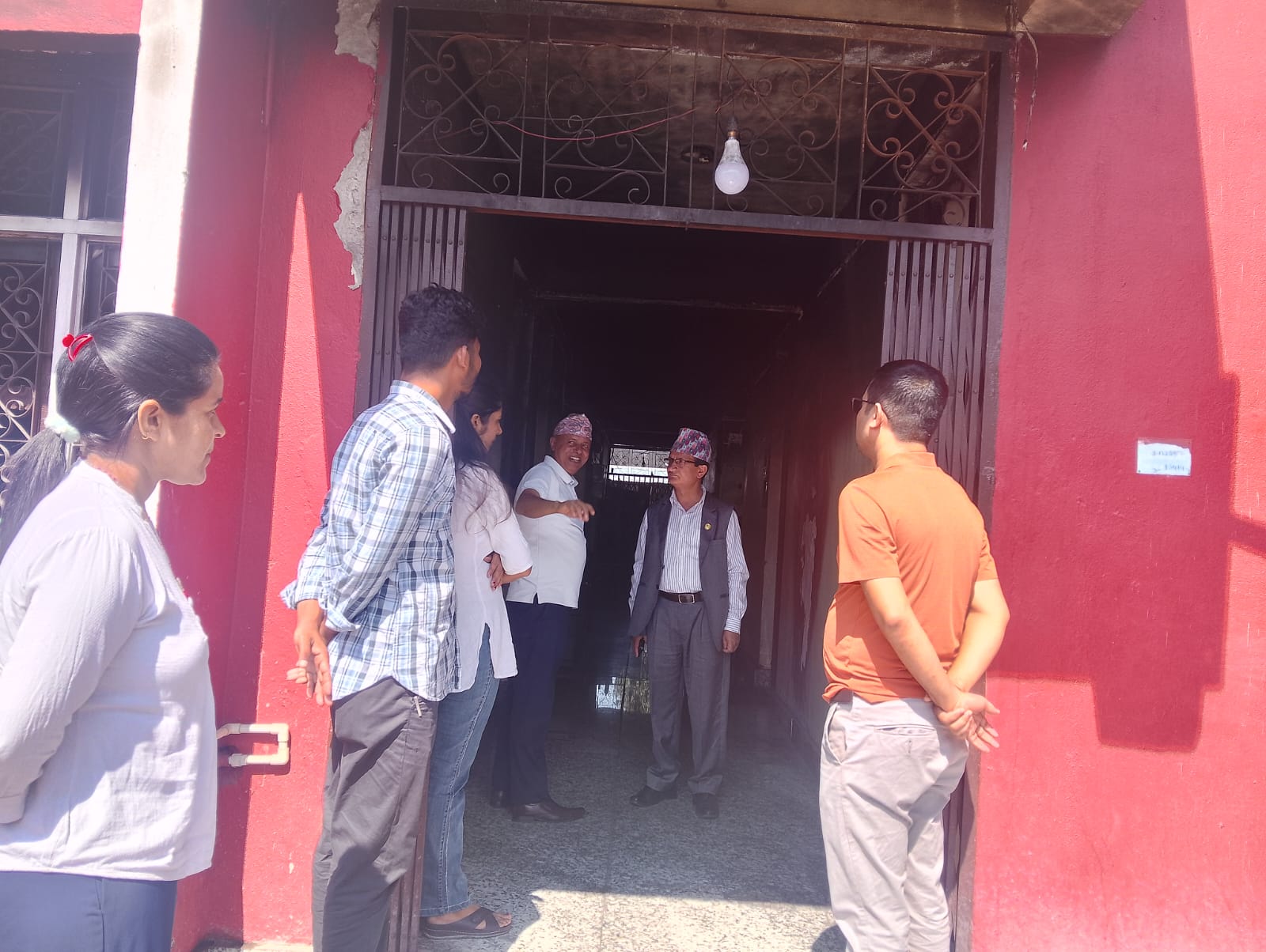 आगजनीबाट क्षतिग्रस्त कृषि कार्यालयको मन्त्री पौडेलद्वारा निरीक्षण