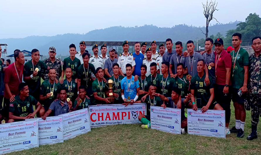 मकवानपुर । मकवानपुर जिल्लाको हेटौंडामा आज सम्पन्न चौथो संस्करणको स्थानीय तह शहिद स्मृति मकवानपुर गोल्डकप प्रतियोगिताको उपाधि विभागीय टिम त्रिभुवन आर्मीले हात पारेको छ । साविक बिजेता आर्मीले हेटौंडा–५ स्थित पिप्ले–क्याम्पा रंगशालामा भएको फाइनल खेलमा घरेलु टोली एफसी विजय युथलाई २–१ गोलअन्तरले पराजित गरेको हो । उपाधिसँगै आर्मीले १५...