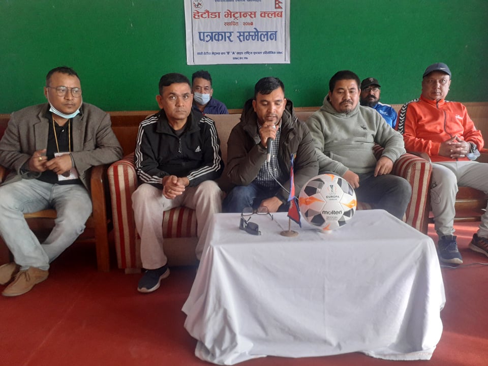 मकवानपुर । हेटौँडा भेट्रान्स क्लबको आयोजनामा यही मंसिर २७ गतेबाट सातौं हेटौँडा भेट्रान्स कप ८ ‘ए’ साइट राष्ट्रिय फूटबल प्रतियोगीता आयोजना हुने भएको छ । आज हेटौँडामा पत्रकार सम्मेलन गरी खेलको बारेमा जानकारी दिएको हो। खेल हेटौँडा उपमहानगरपालिका वडा नं–५ स्थित निर्माणाधिन पिप्ले रंगशालमा सञ्चालन हुने भएको छ ।...