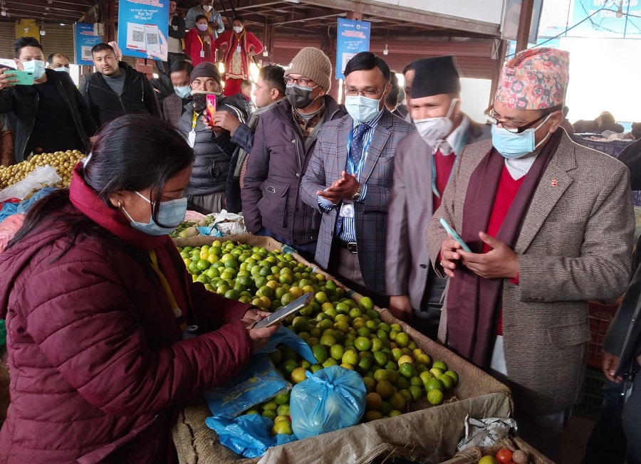 तीनकुने कृषि बजारमा क्युआर कोडः १२० रुपैयाँको एक किलो कागति किने गभर्नरले