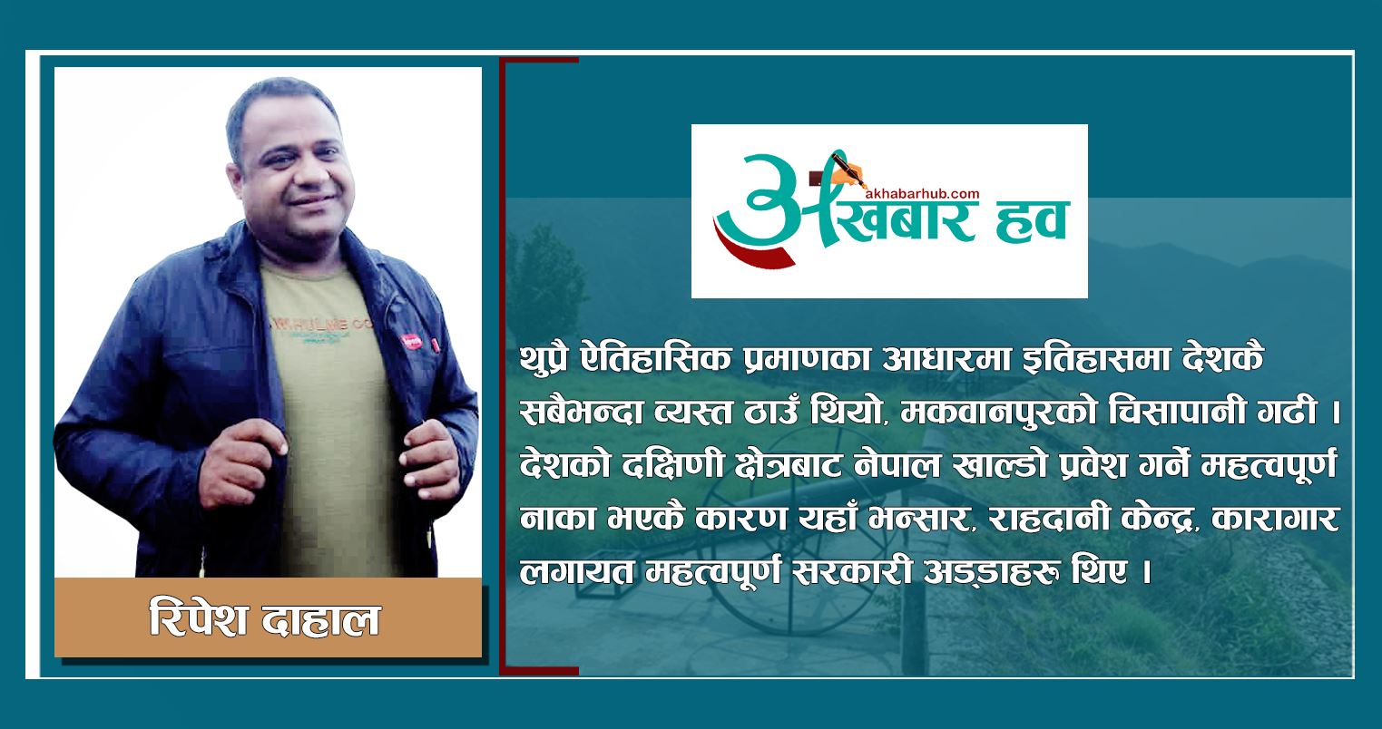 मकवानपुर । देशमा भएका गढी तथा किल्लामध्ये सबैभन्दा धेरै ऐतिहासिक चीजबीजको संरक्षण भएको स्थान हो, मकवानपुरको चिसापानी गढी । यहाँ पुरातात्विक महत्वका थुप्रै वस्तु सुरक्षित रहेकाले ऐतिहासिक अध्ययनका हिसाबले यो गढी महत्वपूर्ण रहेको इतिहासका जानकारहरु बताउँछन् । इतिहासका अध्येता केदार न्यौपानेका अनुसार कुनै बेला निकै नै चल्तीको नाका रहेको...